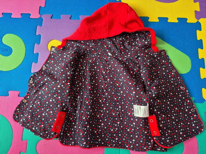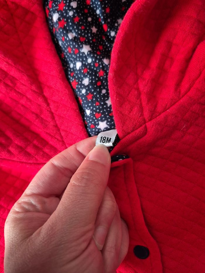Afin de pouvoir financer les frais paramédicaux de notre fille, j'offre une seconde vie à nos vêtements. Merci de bien regarder les photos et lire la description : Veste neuve, jamais portée Matière légère Rouge, à motifs lapins sur les poches et jolis imprimés à l'intérieur. Taille 18 mois -> Les articles sont stockés dans des sacs sous-vide et peuvent donc être froissés -> RMP possible dans le département 54 / proche 88 (plus de précisions dans mon profil) 72