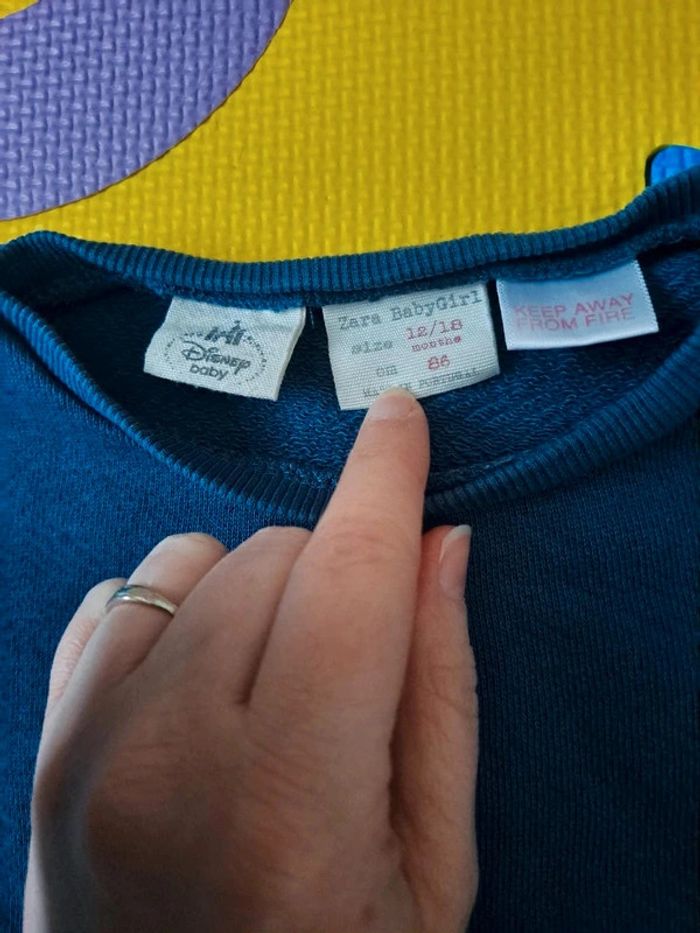 Afin de pouvoir financer les frais paramédicaux de notre fille, j'offre une seconde vie à nos vêtements. Merci de bien regarder les photos et lire la description : Lot de 4 pulls/sweat en 12 mois : - 1 pull doux à capuche Kiabi - 1 pull Kiabi Cœur - 1 pull Carrefour doux à l'intérieur - 1 pull/sweat Zara motif Minnie -> Les articles sont stockés dans des sacs sous-vide et peuvent donc être froissés -> RMP possible dans le département 54 / proche 88 (plus de précisions dans mon profil) 51