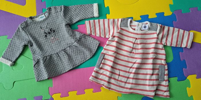 Afin de pouvoir financer les frais paramédicaux de notre fille, j'offre une seconde vie à nos vêtements. Merci de bien regarder les photos et lire la description : Lot 2 robes pull, taille 3 mois : - 1 robe pull Disney Baby Miss Bunny TBE - 1 robe pull Petit Bateau État satisfaisant : voir photos. Couleur passée, le blanc n'est plus aussi éclatant qu’avant -> Les articles sont stockés dans des sacs sous-vide et peuvent donc être froissés -> RMP possible dans le département 54 / proche 88 (plus de précisions dans mon profil) 15