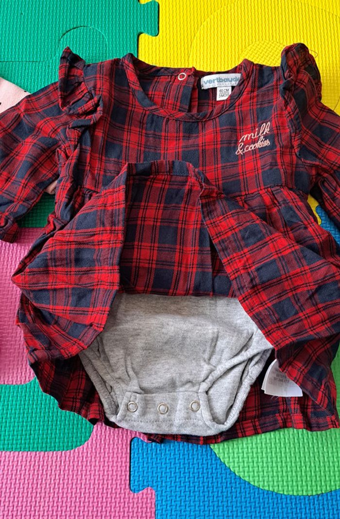 Afin de pouvoir financer les frais paramédicaux de notre fille, j'offre une seconde vie à nos vêtements. Merci de bien regarder les photos et lire la description : Robe avec body intégré Vertbaudet en TBE, taille 3 mois. -> Les articles sont stockés dans des sacs sous-vide et peuvent donc être froissés -> RMP possible dans le département 54 / proche 88 (plus de précisions dans mon profil) 14