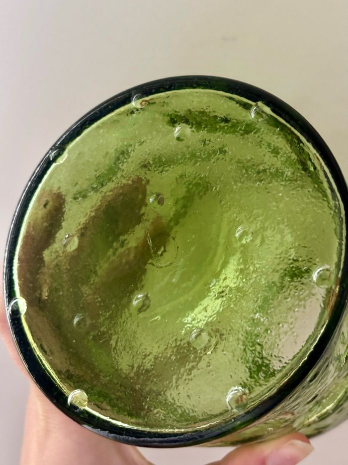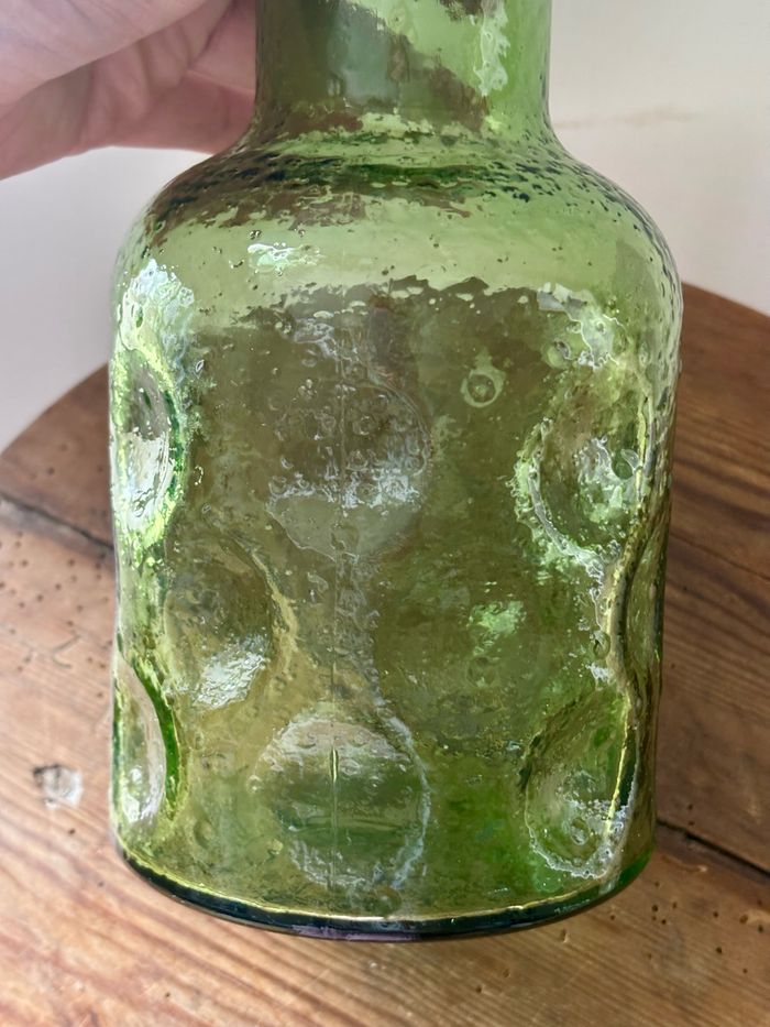 Vintage belle bouteille carafe en verre épais alvéolé verte - photo numéro 7