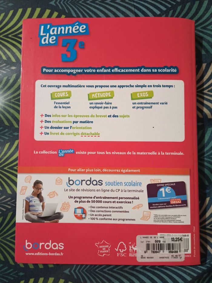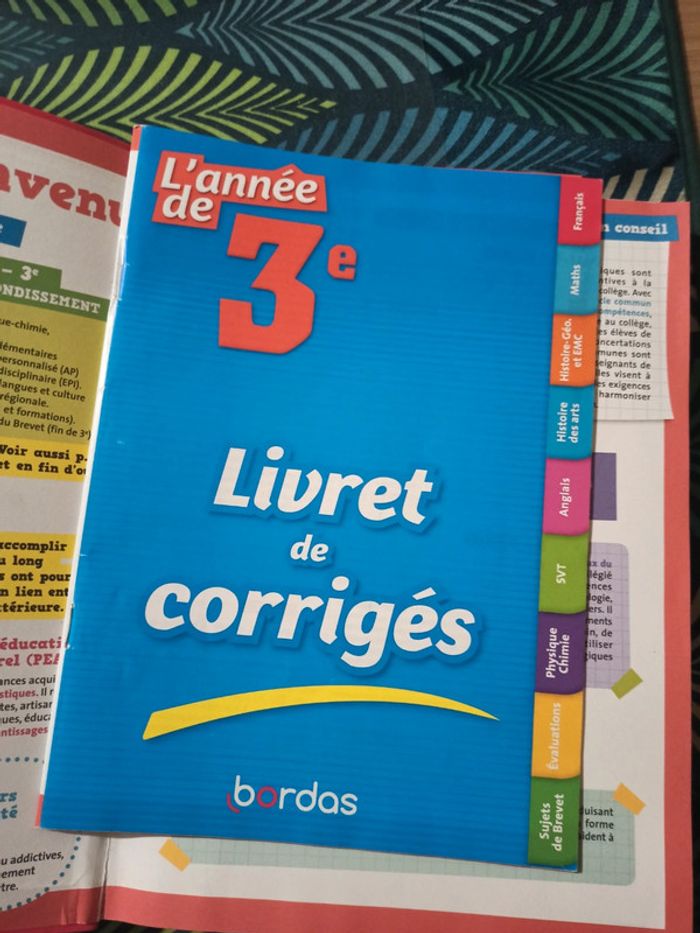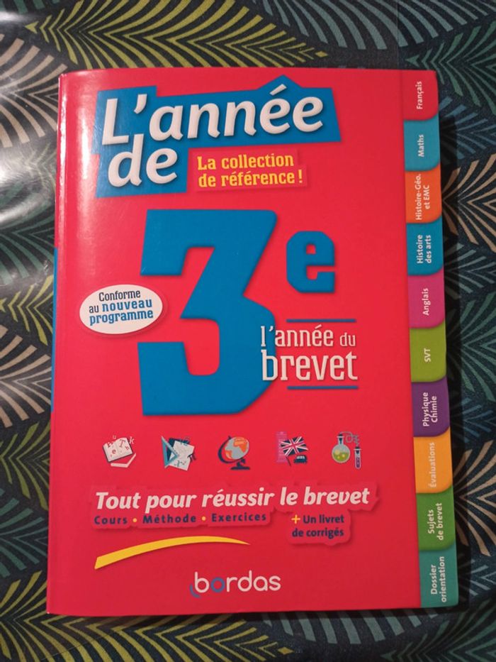 Livre pour la préparation au brevet de 3e. Cours, Méthode, Exercices + le livret des correction. En bon état