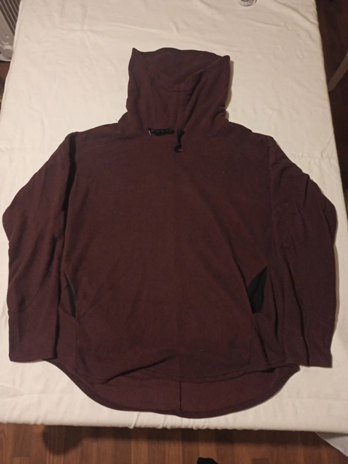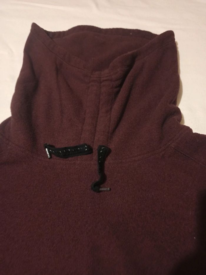 Pull polaire fin grand col réglable En bon état Je n'ai pas la taille donc je mets les mesures Épaule à épaule 74cm Hauteur 70cm Longueur manche 47cm