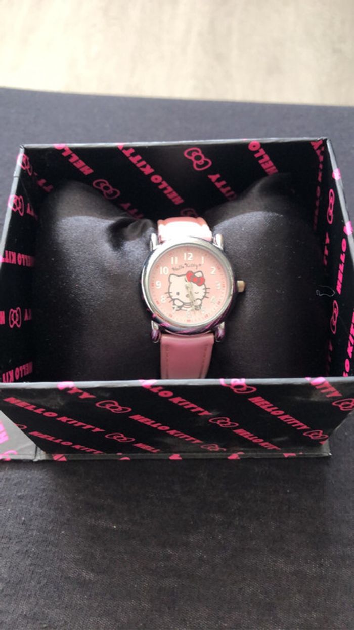 montre hello kitty acheté en bijouterie Cléor. Quelques rayures à voir sur les photos. Elle fonctionne parfaitement il faut juste changer la pile. Avec sa boîte d’origine #hellokitty