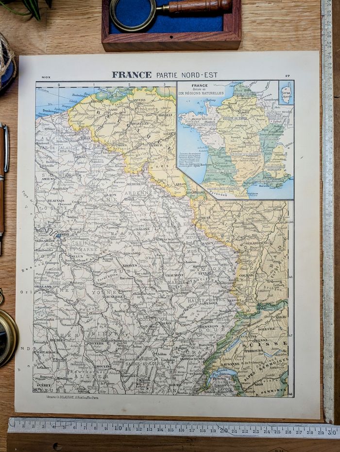 ⚠️Cadre non inclus⚠️ 🧭 Affichons Les Oubliées ! 🧭 Pour une décoration Vintage et Authentique, à s'offrir ou à offrir ! Voyagez dans le temps et partez explorer le Nord-Est de la France au début du siècle dernier avec cette magnifique carte géographique, détaillée et colorée, imprimée à Paris en 1900. Parfait pour les passionnés de l'histoire de France. Il s'agit d'une impression ancienne authentique et non d'une reproduction moderne. Nous vendons uniquement des impressions originales qui ont traversé le temps avec un véritable aspect patiné. 📏 Dimensions carte : L29cm x H34.5cm 📦Envoi rapide, protégé et soigné Les affiches sont envoyées à plat dans une pochette plastifiée et une enveloppe carton rigide. Emballages soignés et personnalisés N'hésitez pas à nous demander d'insérer un message personnalisé si vous souhaitez offrir cette commande pour une occasion spéciale. 🔎 Les articles sont notés en "bon état" au vu de leurs âges, bien évidemment ils présentent certaines marques du temps passé. Les photos vous permettront de voir l'état réel car l'objet en photo sera celui expédié, il n'y a pas de stock. 🚚 Livraison France et international 🔑 Mots-clés #ireland #deutschland #osterreich #italia #portugal #espana #AfficheVintage #AfficheAncienne #GravureAncienne #CarteAncienne #AfficheBotanique #AfficheZoologique #AfficheGéographique #AfficheDeVoyage #AfficheArchitecture #DécorationMurale #ArtVintage #AfficheMurale #AfficheIllustrée #ArtAncien #GravureMurale #AfficheDeVille #AfficheHistorique #AfficheRetro #AfficheÉducative #AfficheDécorative #AfficheDeCollection #DécorVintage #AfficheCuriosité #AfficheScolaire #ArtDeMurVintage #brocantevisuelle #imagerieancienne #histoireEtGéographie #EstampeClassique #CartographieVintage #VieillesCartes #AmbianceRétro #CabinetDeCuriosités #HistoireNaturelle #Metz #Alsace #Moselle #Nancy #Strasbourg #Paris #Lorraine #Troyes #Reims #Belgique #Luxembourg #Dijon #Jura #Suisse #Lille 70