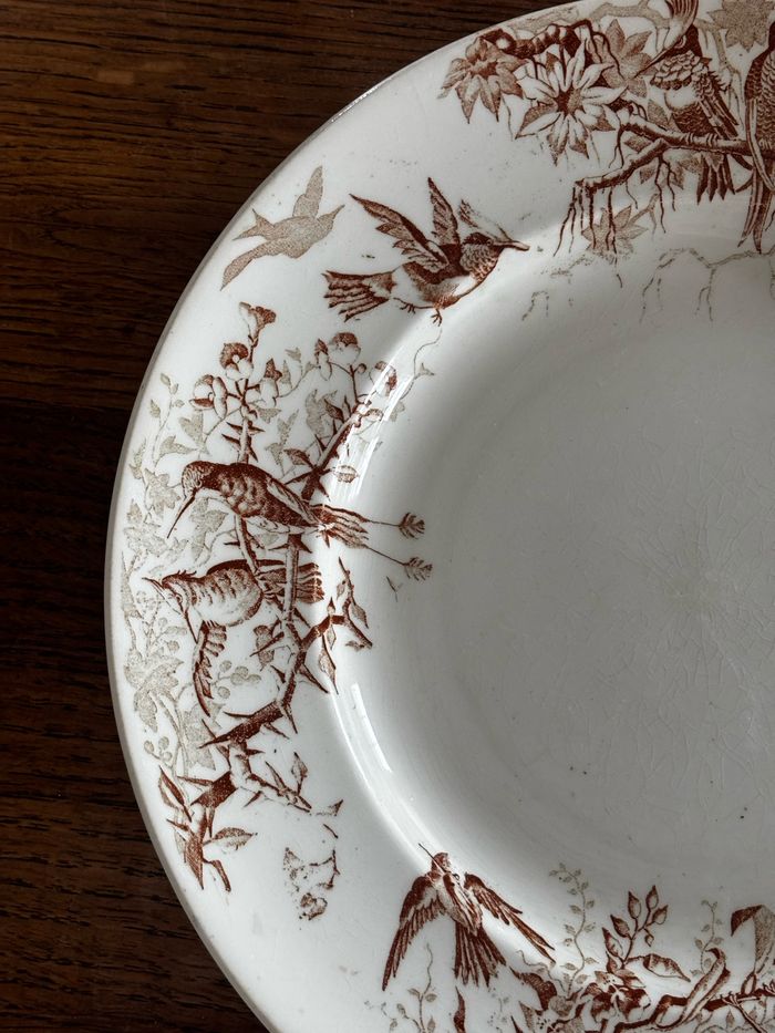 Ancien plat de service rond KG Luneville colibri sepia - photo numéro 7