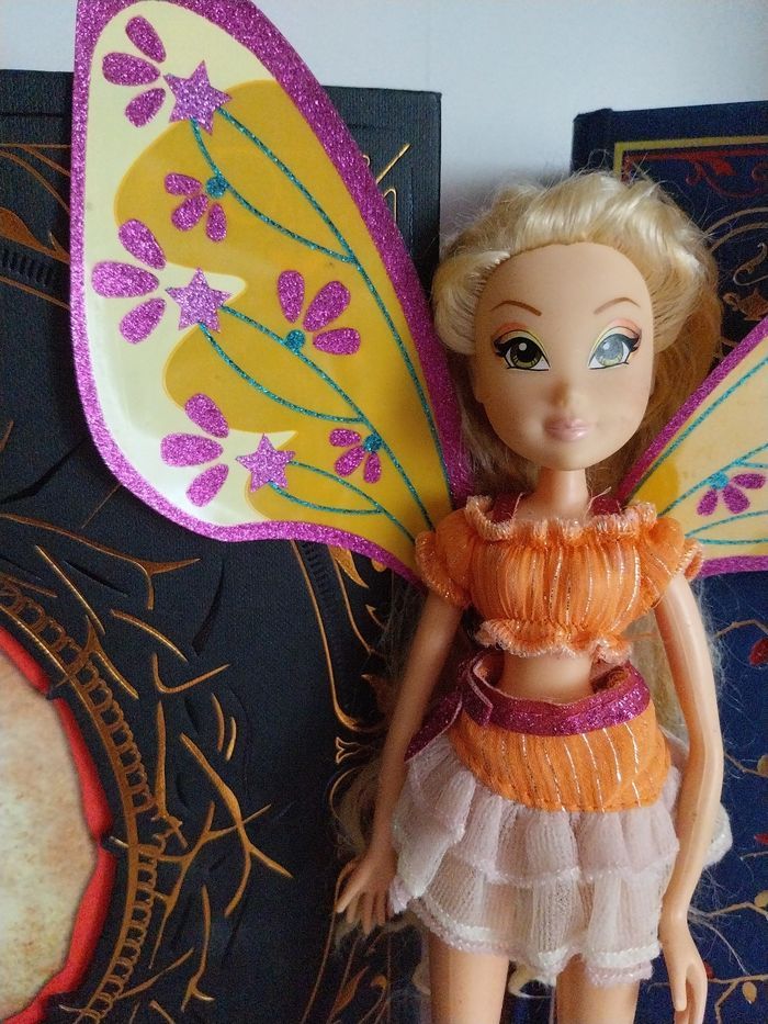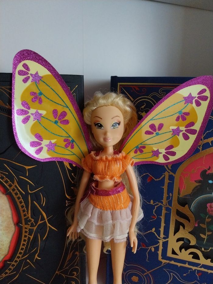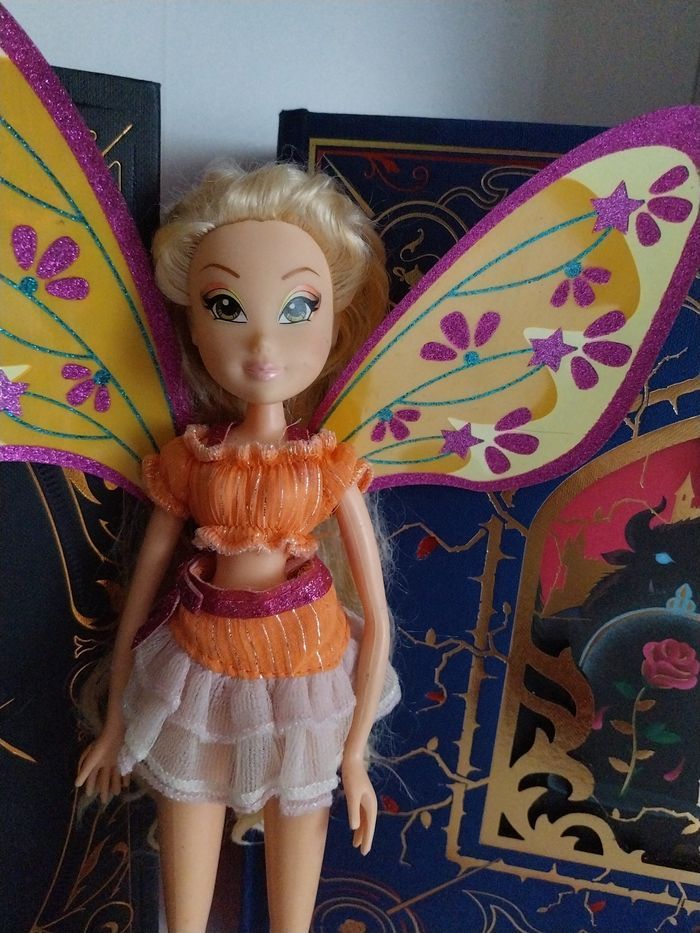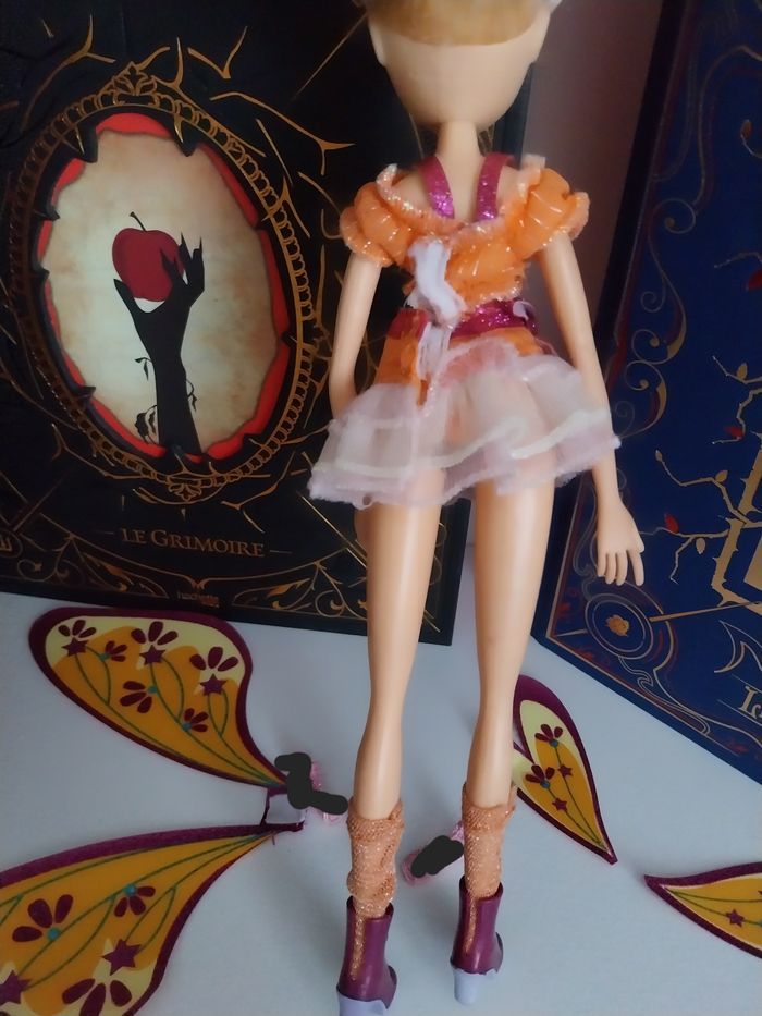 Non négociable, merci ♡ MERCI DE BIEN LIRE L'ANNONCE ET DE BIEN REGARDER LES PHOTOS. Poupée Stella Believix avec sa tenue (haut brillant, belle jupe brillante), ses bottes, ses chaussettes.🧡 Pas de gants (ils sont barrés sur les photos comme ils appartiennent à Layla et que je me suis trompée). Cheveux en bon état, il faudra les laver et les repeigner de votre côté. DÉFAUTS : La poupée peut présenter quelques taches sur le corps (je n'ai pas essayé de les faire partir), si elle en a, vous le verrez sur les photos. ⚠️ La poupée n'a que la partie supérieure des ailes qui tiennent (voir les ailes jaune orange sur la pile d'ailes en dernière photo). Les deux petits morceaux du bas des ailes sont ajoutés mais ne tiennent plus. Vous obtenez ce que vous voyez en photos. Pour le reste, la poupée est en bon état. Vous êtes prévenus ☺️ 50€ Envoi rapide et soigné. Je vends également de nombreuses autres Winx, davantage complètes (Bloom, Tecna, Flora, Musa et Roxy Believix, et d'autres collections Winx).