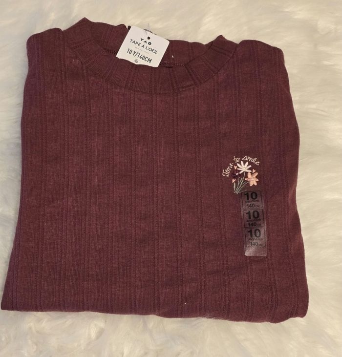 Neuf (non porté)⚘️⚘️😍🤩 superbe teeshirt  côtelé ml 10 ans fille ⚘️⚘️🤩😍 - photo numéro 1