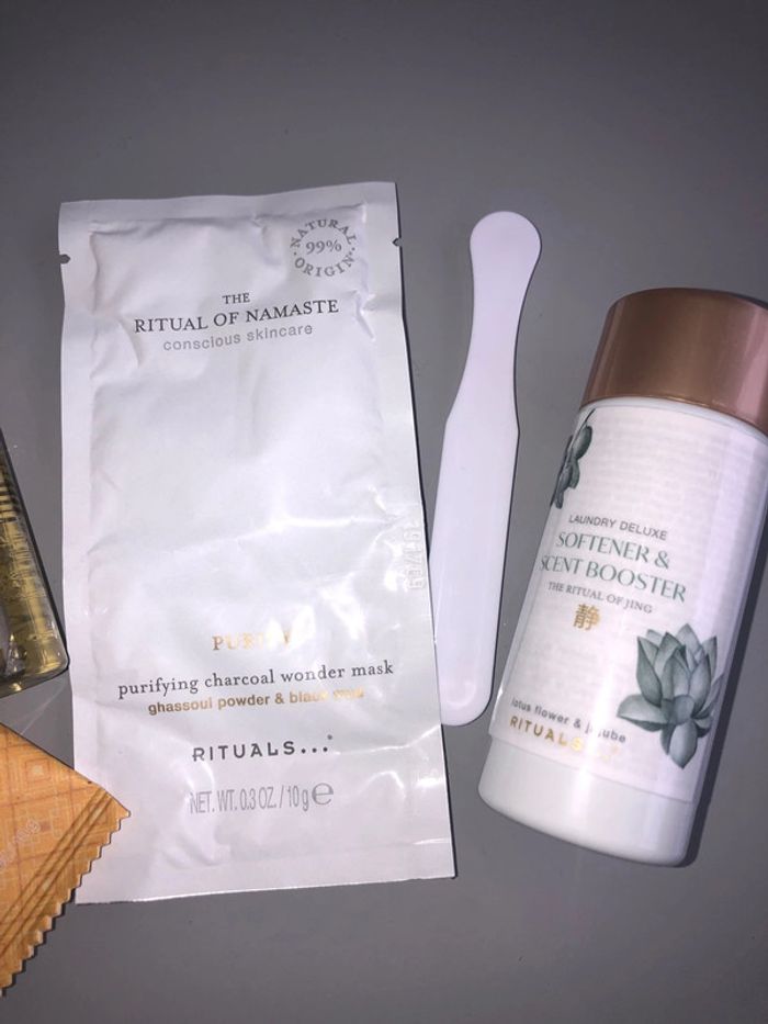 Lot de 4 articles rituals comprenant: - savon rituals of mehr 10g - eau micellaire 3 en 1 30ml - rituals of jing lotion pour la machine à laver les vêtements 75ml - ritual of namaste masque purifiant pour le visage 10g avec sa spatule d’application. Neuf avec étiquette Jamais utilisé #rituals #ritualscosmetics #soinduvisage #ritualssoins #ritualsnamaste #ritualsjing #ritualsmehr #marquepourlevisage #eaumicellaire