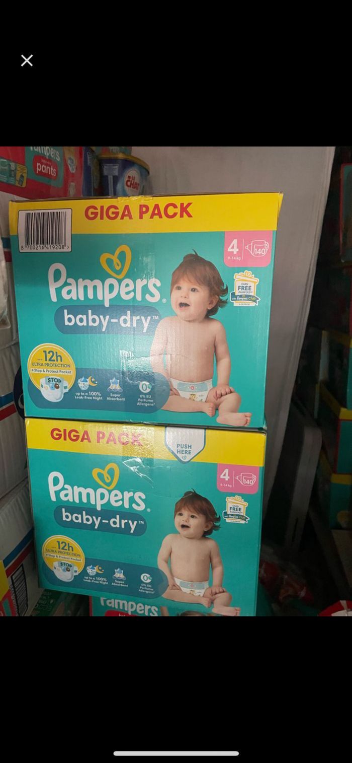 Le lot de deux Giga pack de couches Pampers baby dry taille 4