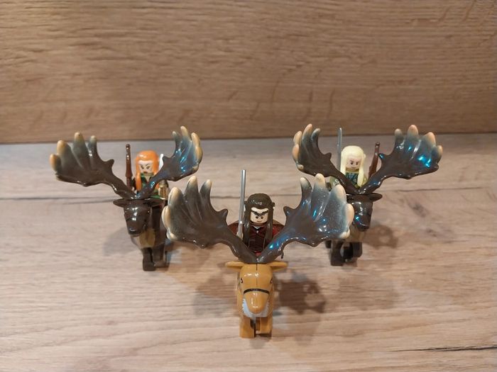 Figurines type lego Roi Elfes Elrond + Legolas et Tauriel sur cerfs seigneur des anneaux - photo numéro 3
