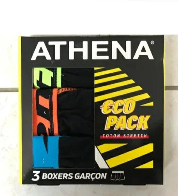 Lot de 3 Boxers ATHENA garçon noir coton stretch 10 ans Neufs dans emballage