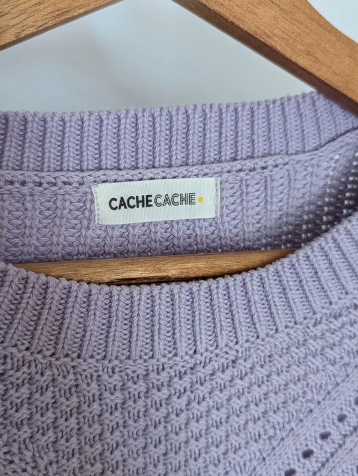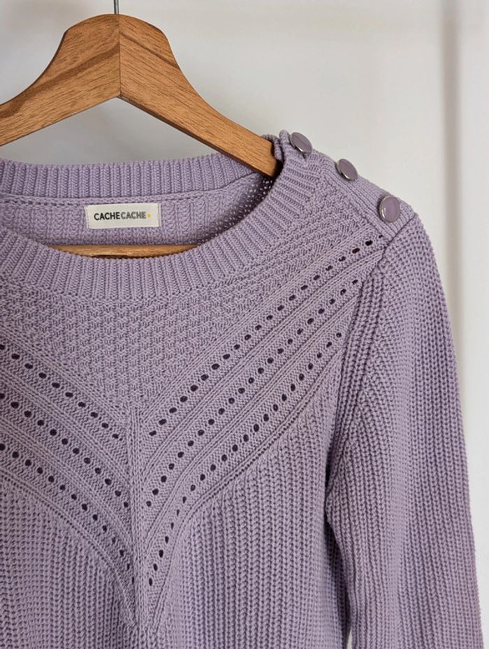 Pull en maille, Lila, CACHE CACHE, taille S, très bon état, acrylique et coton.