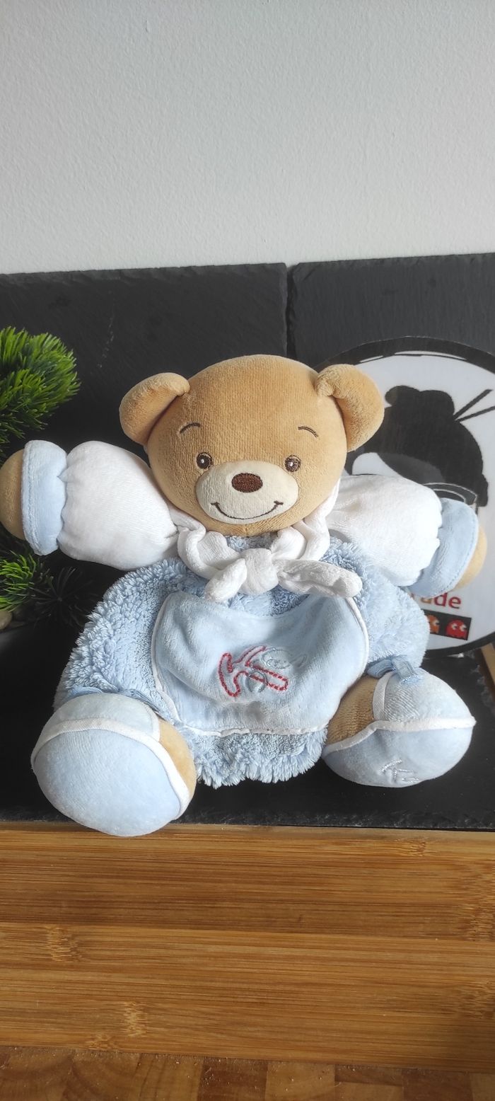 Kaloo Blue ours marin bleu blanc poche noeud blanc boule peluche K Rouge Marron - photo numéro 1