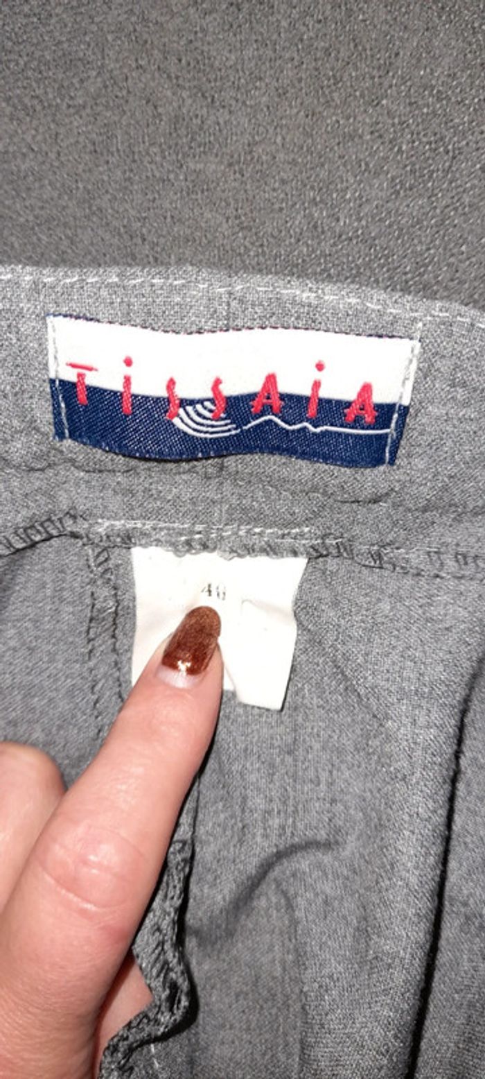 Pantalon pince pour femle taille 40. Couleur gris chiné de chez tissaia. étiquette de lavage illisible. Se ferme sur le côté avec une fermeture #S_riedle_PantalonFemmeXS