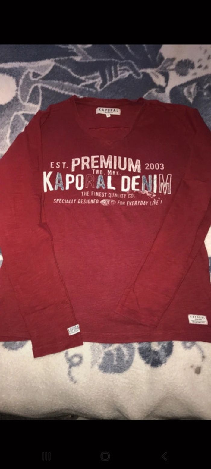 Tee-shirt manches longues rouge et blanc taille m de chez kaporal