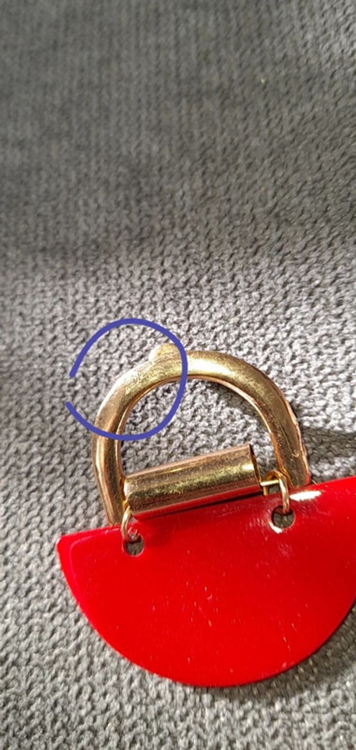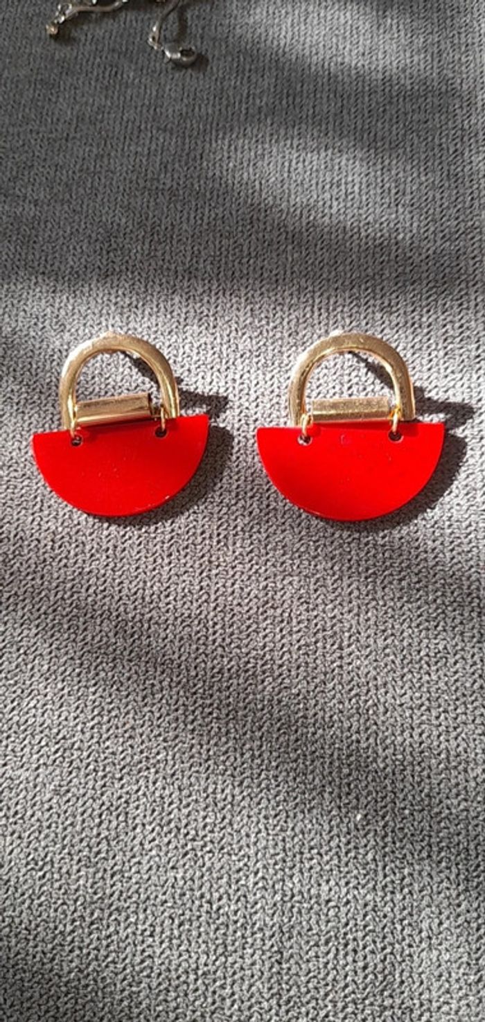 Boucles d'oreilles rouge et doré. Petit défaut de fabrication #S_riedle_Bijoux