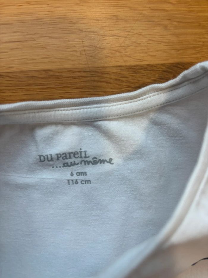 T-shirt MC blanc imprimé Du pareil au même 6 ans En très bon état Pour mon 6 ans fille, cliquez : #fiiipe_6ansfille #barboteuse #combinaison #grenouillere #pyjama #jogging #sarouel #legging #pantalon #vetements #lot #short #salopette #tunique #blouse #debardeur #tshirt #robe #jupe #bloomer #pull #coton #gaze #laine #velours #été #hiver #misaison #livres #livresbebe #jouets #educatif #transat #chapeau #casquette #lange #sweat #liberty #fleurs #mariniere #bodies #body #manchescourtes #mancheslongues #3moisgarcon #sergentmajor #dupareilaumeme #okaidi #obaibi #vertbaudet #zara #tapealoeil #cyrillus #jacadi #bonpoint #tartineetchocolat #bonton #franginfrangine #natalys #hm #kiabi #orchestra #primark #catimini #ikks #arseneetlespipilettes #ralphlauren #marese #dpam #jeanbourget #mango #monoprix #boutchou #petitbateau #petitprix #petitbeguin #lolapalacios #disney #6ansfille