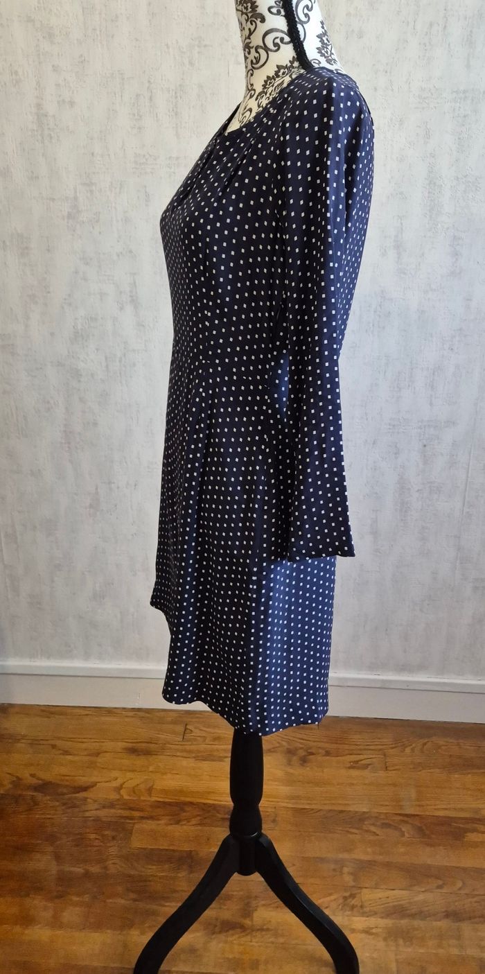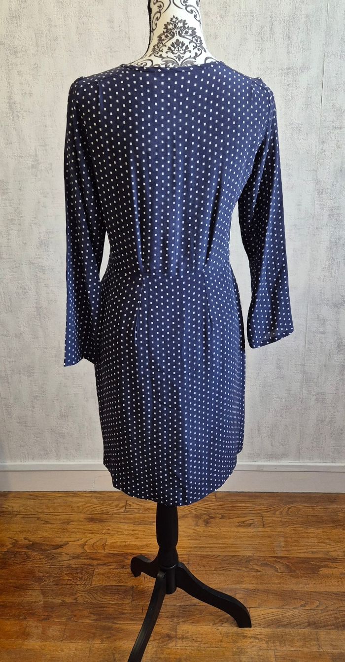 Robe midi manches longues bleu avec carre blanc hatford taille 2 38 M - photo numéro 4
