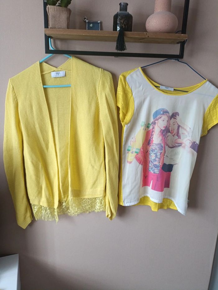 En très bon état. Le t shirt manches courtes et son gilet