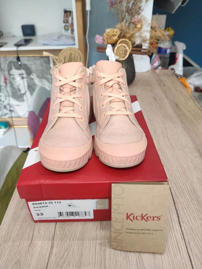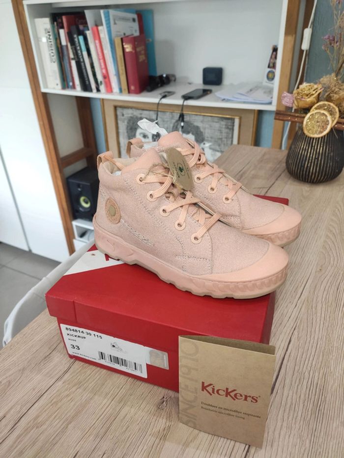 Chaussures cuir kickers 33 neuves Esprit palladium couleur rose poudré légèrement pailletée 🥰 Fermeture par zip Envoi rapide et soigné Vêtements Sergent major et jacadi trié par taille liens dans mon profil Sylvanian families dans mon dressing