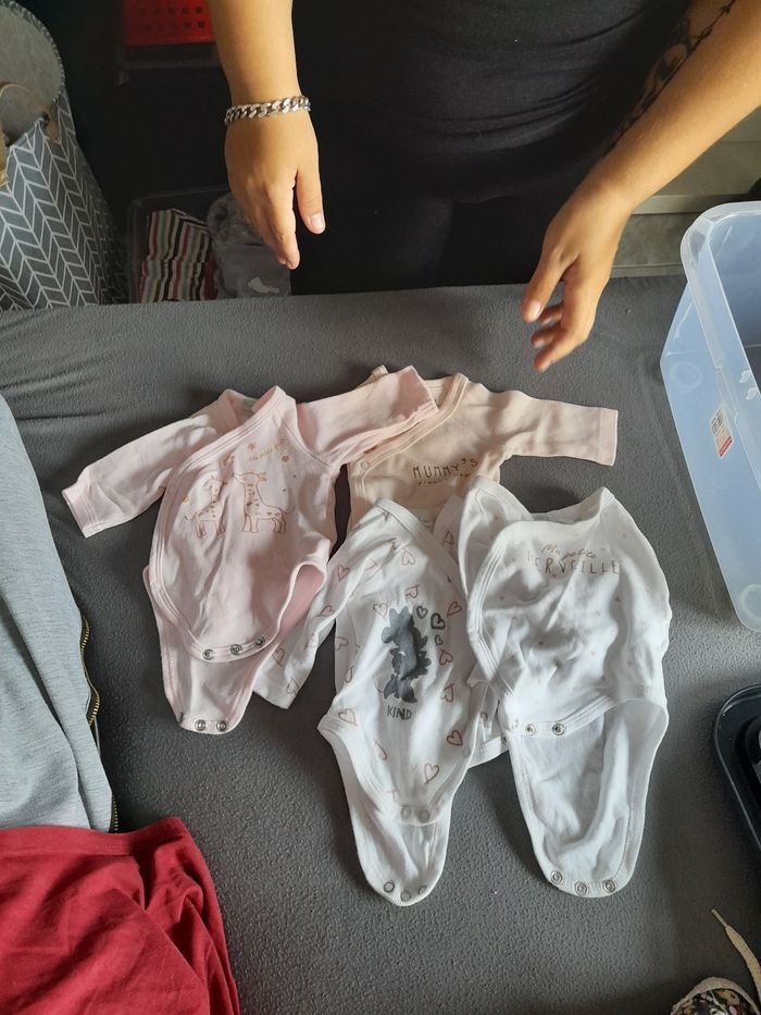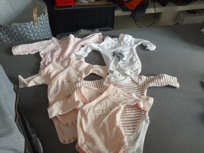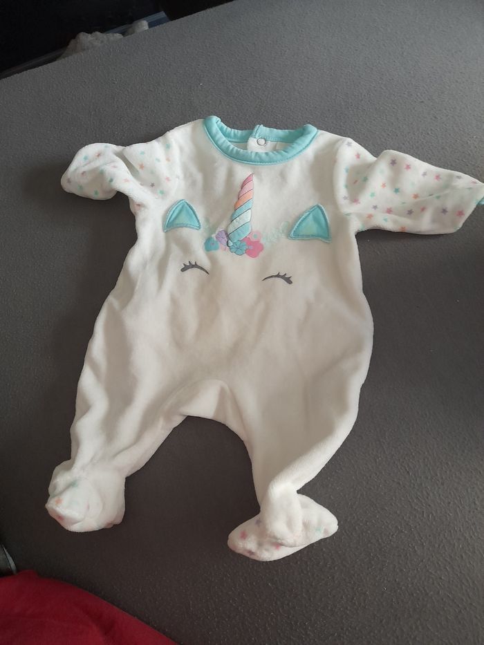 Je vends pyjama également body 0 mois 50cm. Mis 1 à 2 fois. La licorne pyjama jamais mis. Veuillez me contacter pour les prix.