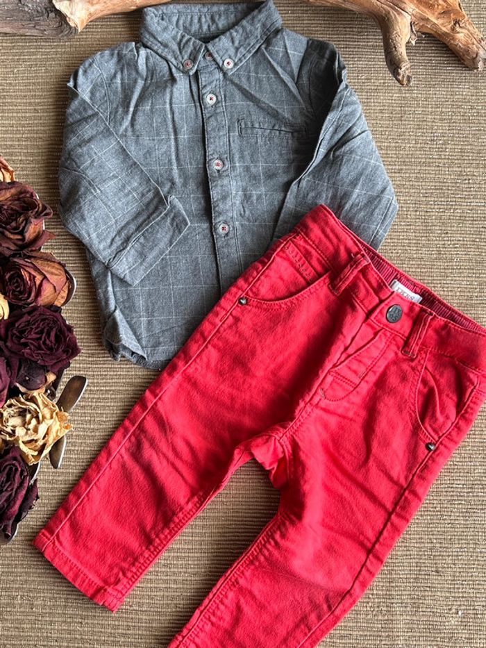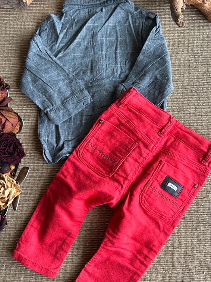 Elle est composée d’une chemise Kiabi et d’un jean slim extensible IKKS (la couleur est un peu délavée)