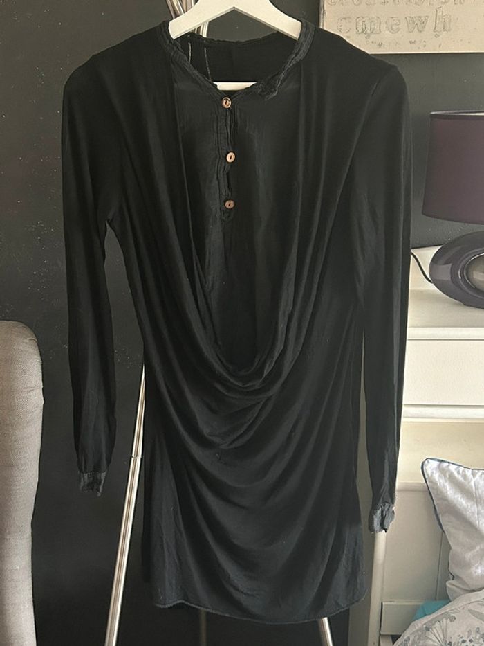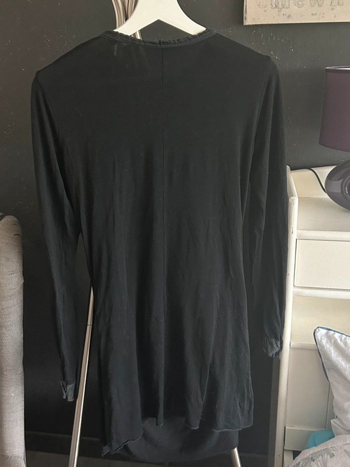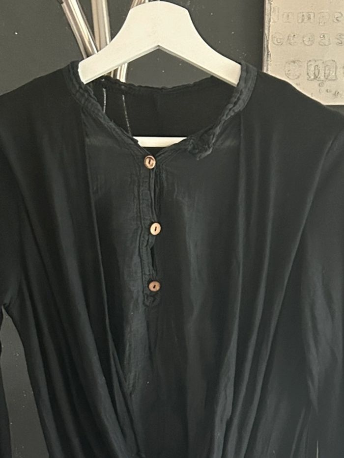Elle n’a pas de taille indiqué mais elle correspond à un 36 La coupe est fluide et ample