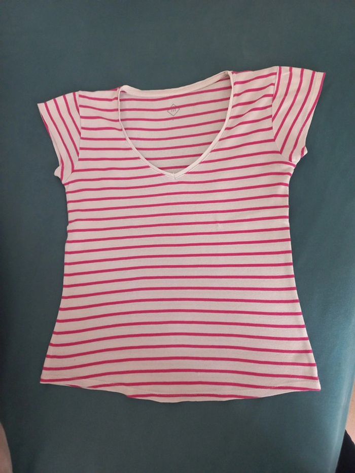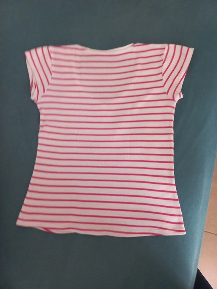 Tee-shirt rose et blanc rayé Tex S - photo numéro 1