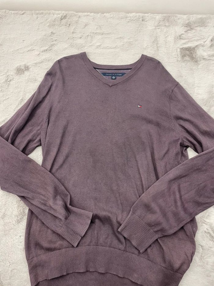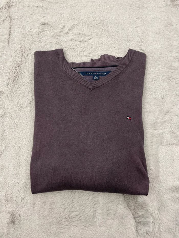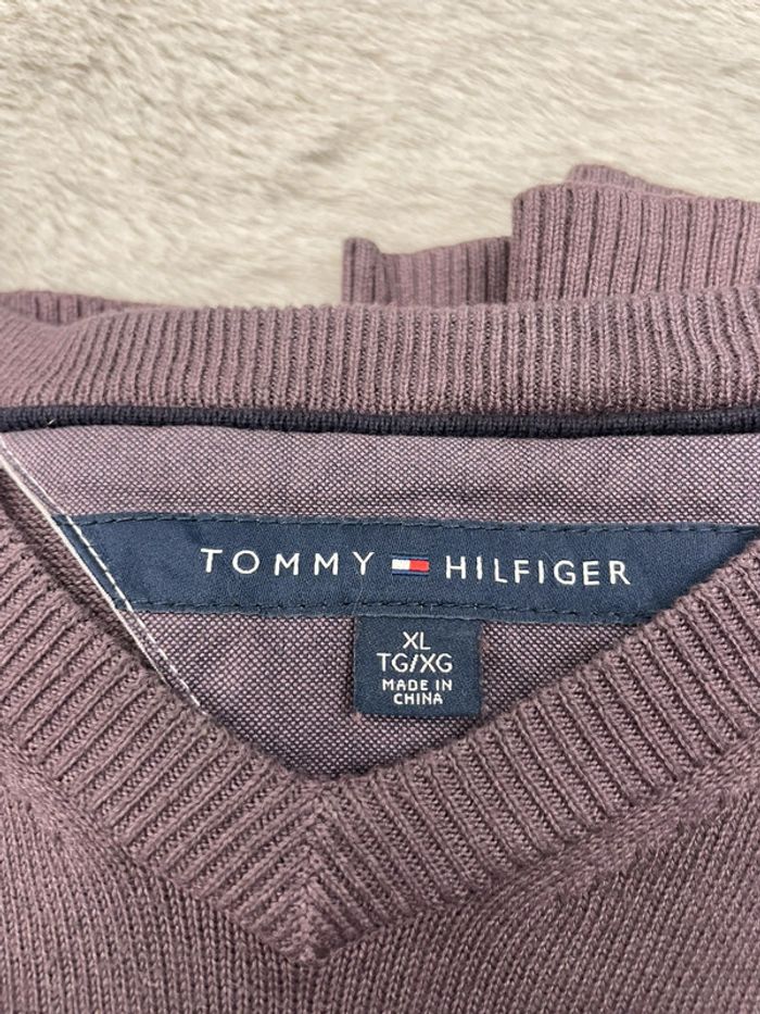 Pull fin Tommy Hilfiger mauve col V taille XL - photo numéro 1