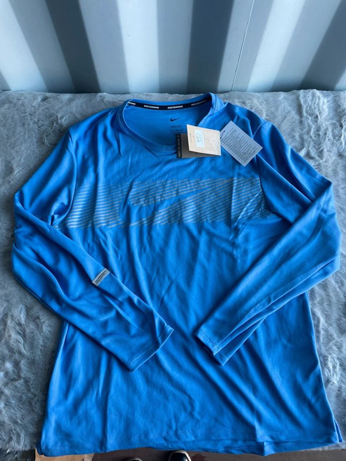 Tshirt Nike running dri-fit manches longues bleu taille M - photo numéro 1