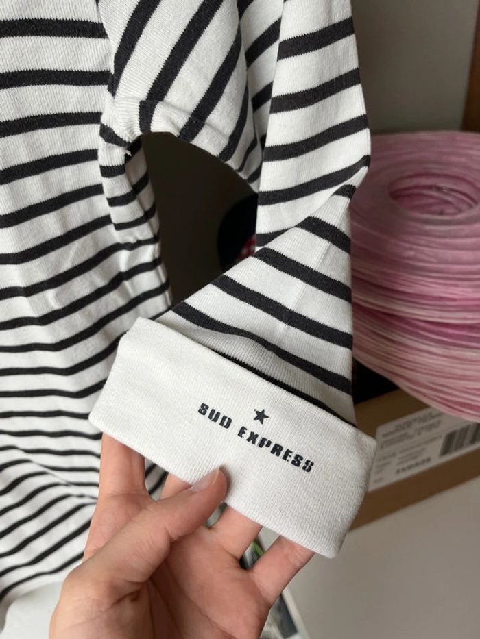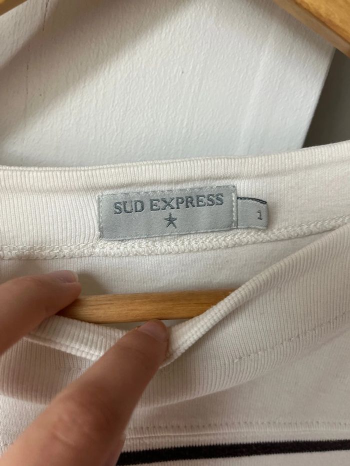 À vendre marinière de la marque sud express. Taille 34. Manche 3/4. Très bon état. Prix neuf minimum 59€