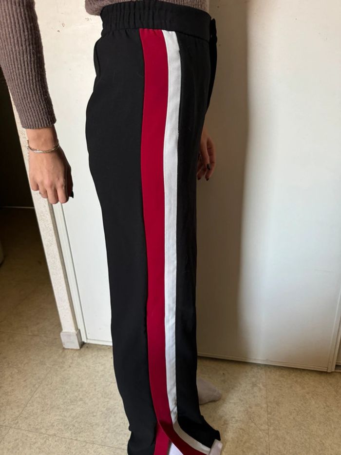 Pantalon droit noir avec bande rouge blanche pretty Little thing taille 34 mais convient pour un S vu la longueur