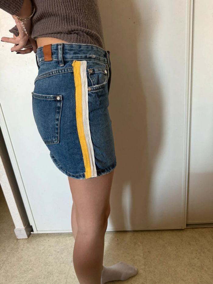 Jupe courte en jeans avec bande blanche et jaune sur le côté Zara taille S