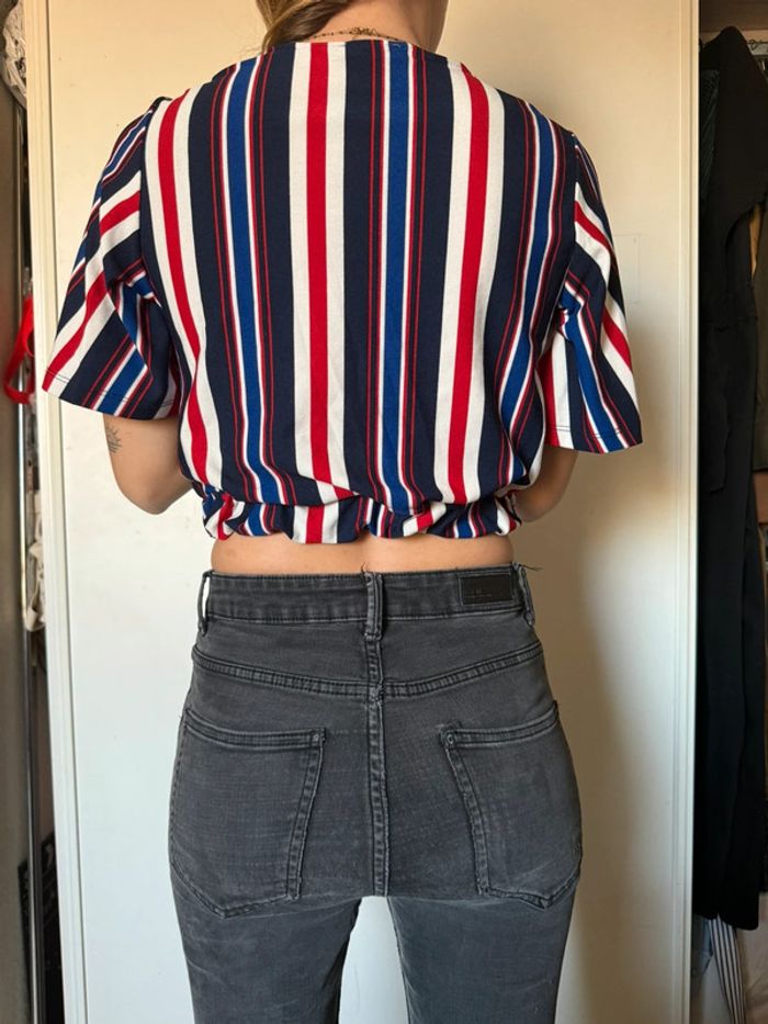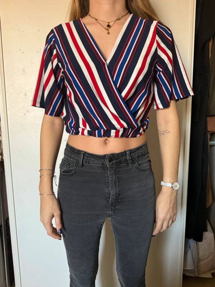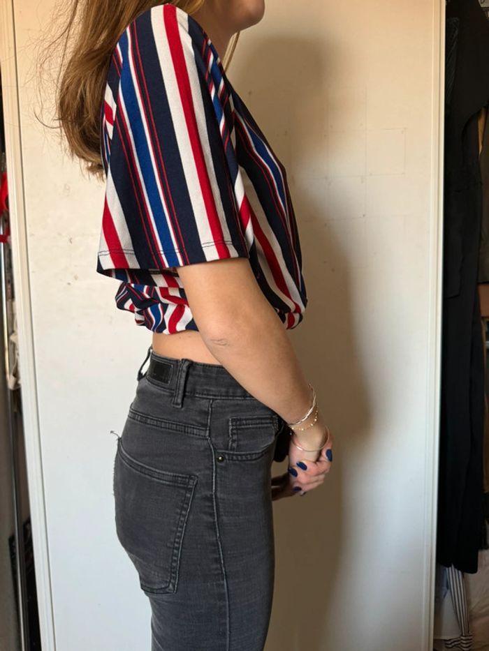 Top court rayé bleu blanc rouge Jennyfer Taille S