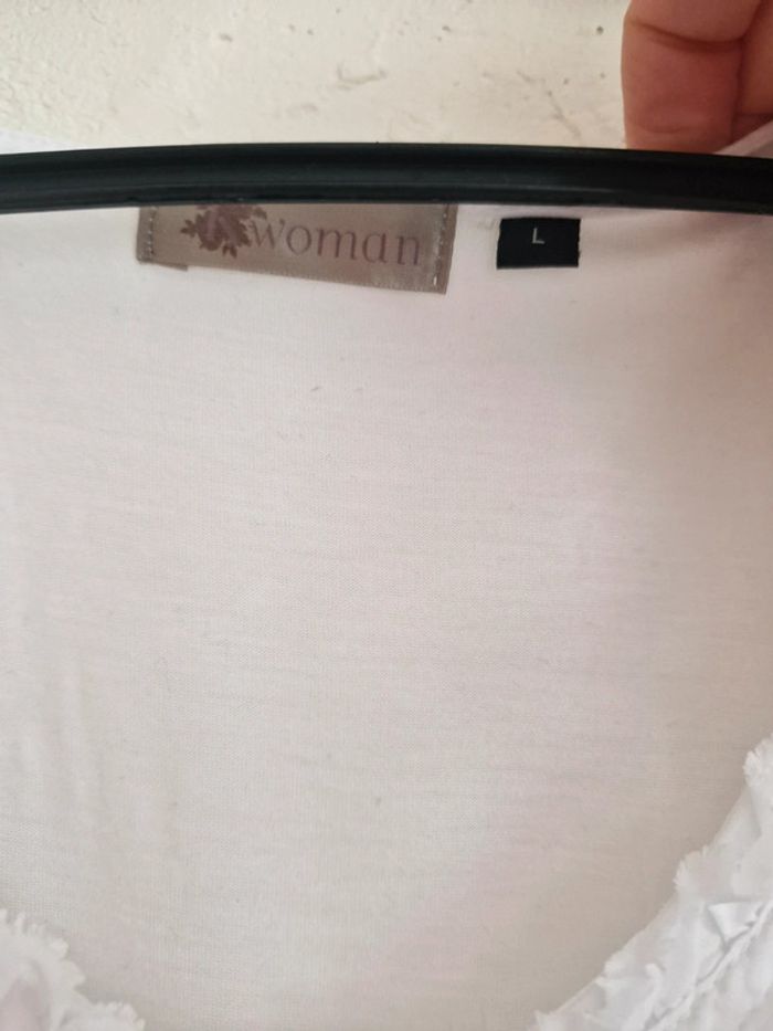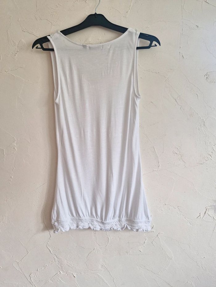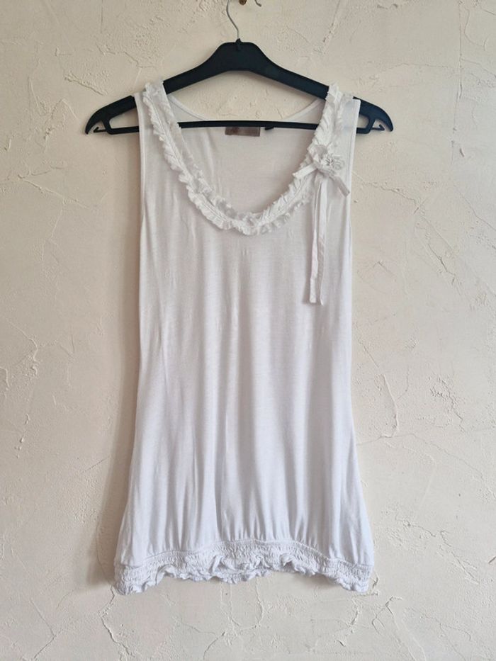 #melany71_taillel Joli haut blanc sans manches de la marque WOMAN, taille L. Détails féminins avec des finitions à volants au col et à la base. Tissu fluide, très agréable à porter. Parfait pour les beaux jours ou à glisser sous un blazer. ➡️ Très bon état, porté une ou deux fois, aucun défaut. 📏 Taille L – convient à un 40/42 🌸 Style élégant et décontracté. Prix : 3.50 Envoi rapide et soigné 📦 N'hésite pas à regarder mes autres articles pour faire un lot