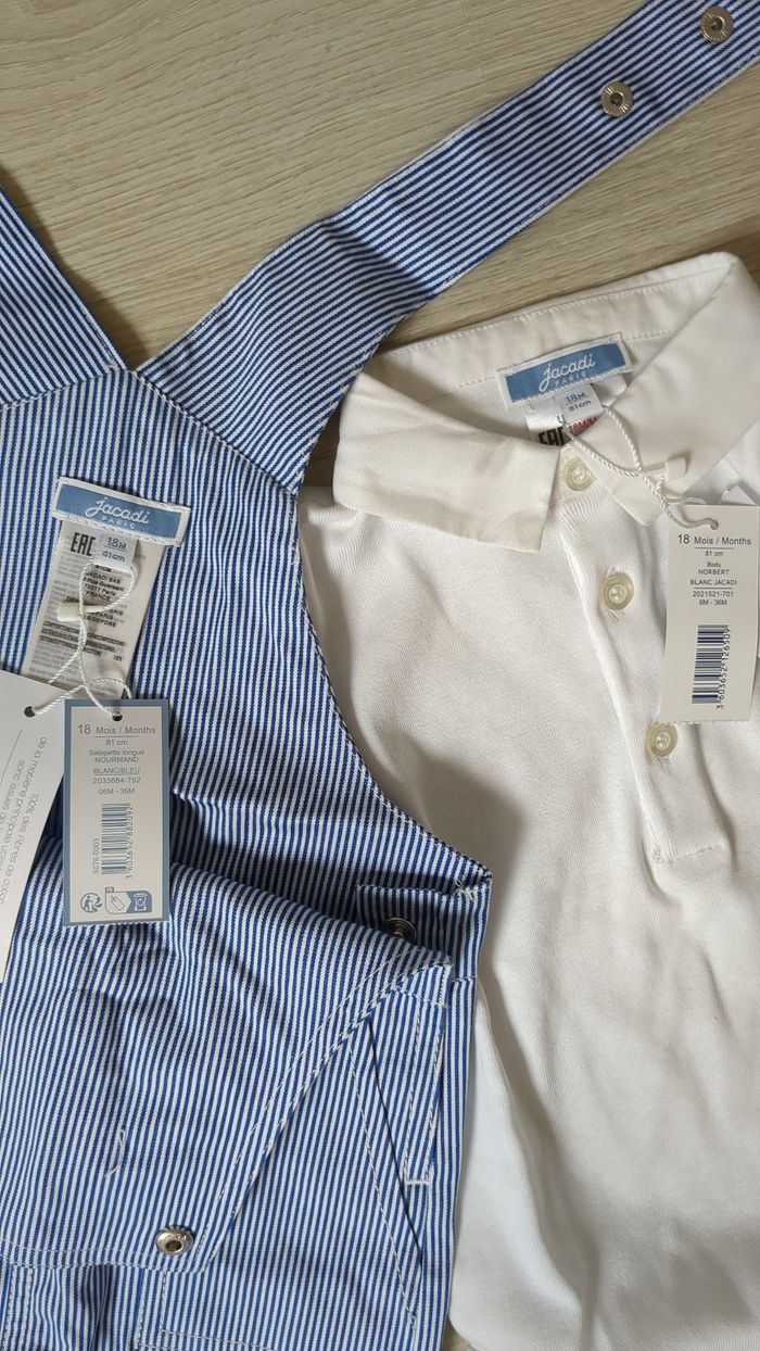Ensemble body et salopette rayée Jacadi 18 mois - photo numéro 1