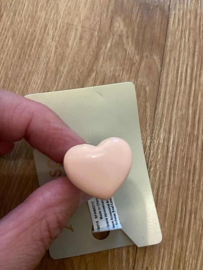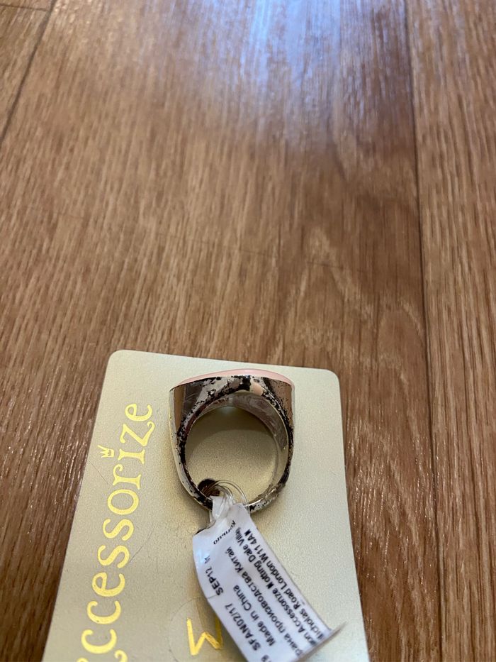 Bague fantaisie Cœur rose pâle argenté effet écaillé Neuf Tour de doigt 52