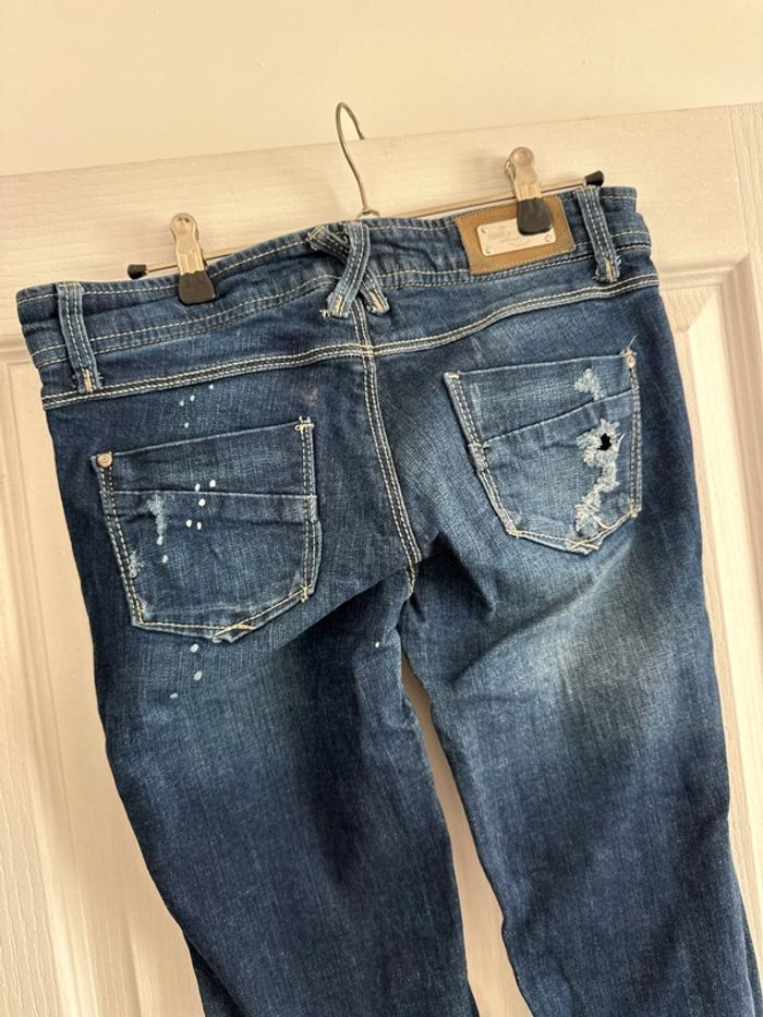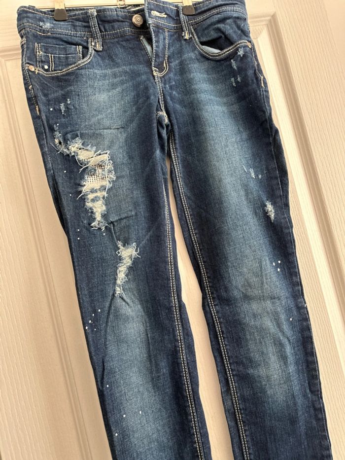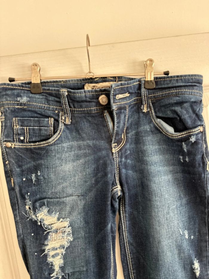 jeans stradivarius bleu et argenté et empiècement déchiré très bon état taille 36 Stradivarius #vivi_famousfemme