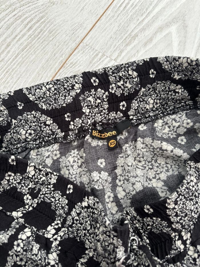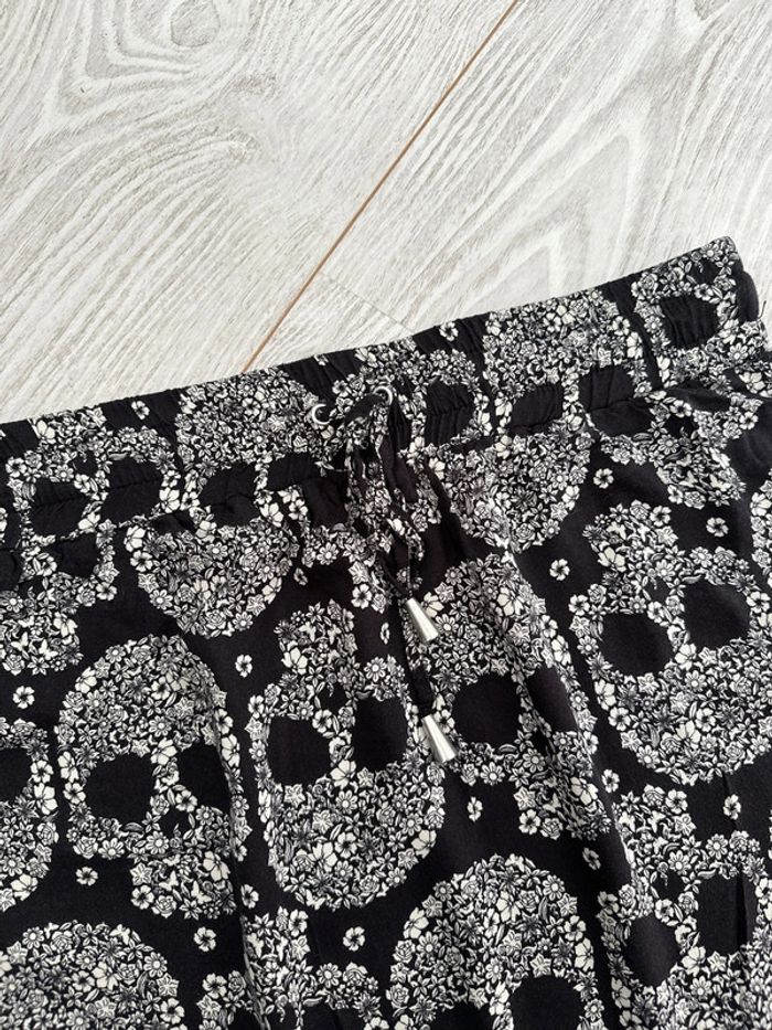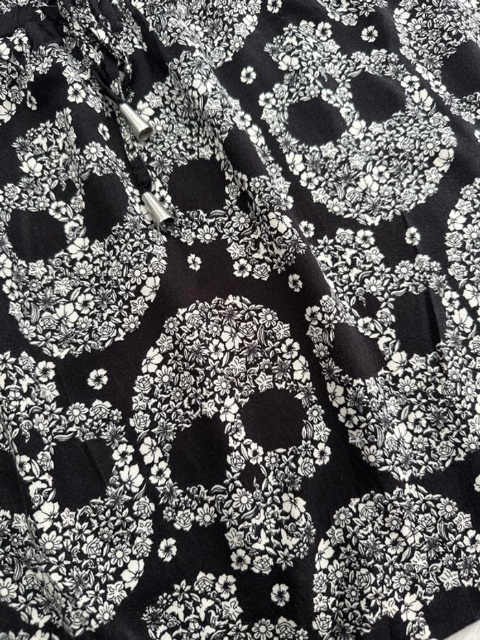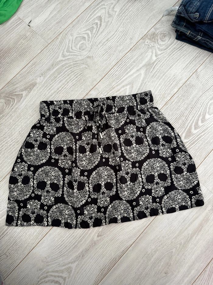 Jupe courte fluide Taille resserrée Noire motif tête de mort fleurs Taille XS Bizzbee #vivi_famousfemme