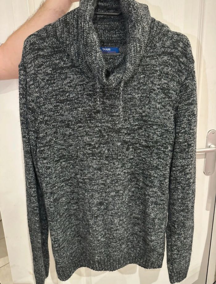 Pull sweat Grand col avec lanière Gris et blanc chiné Jules Taille L Très bon état #vivi_famoushomme