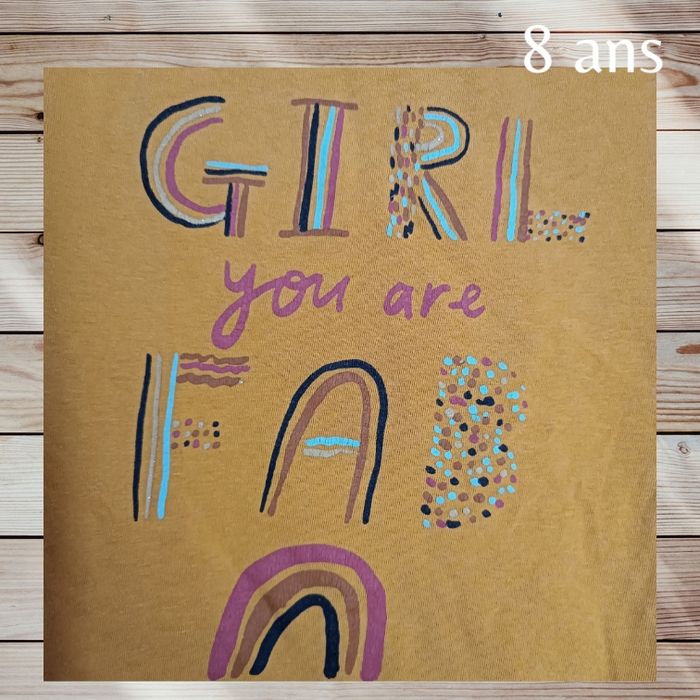 🌈✨ Trop canon ce t-shirt à manches longues ! ✨🌈 👕 En très bon état ! 🔍 Juste un mini craquellement sur le trait du "A" de Fab (mais c’est vraiment discret 👀💅) 🔖 Marque : Orchestra 👗 📏 Taille : 8 ans 👧 🎨 Couleurs : Multicolore avec une inscription ultra stylée "Girl you are fab" 💖🌟 📦 Envoi rapide & super soigné 📮🎁 🙋‍♀️ Parfait pour une petite fashionista ! 💃💫