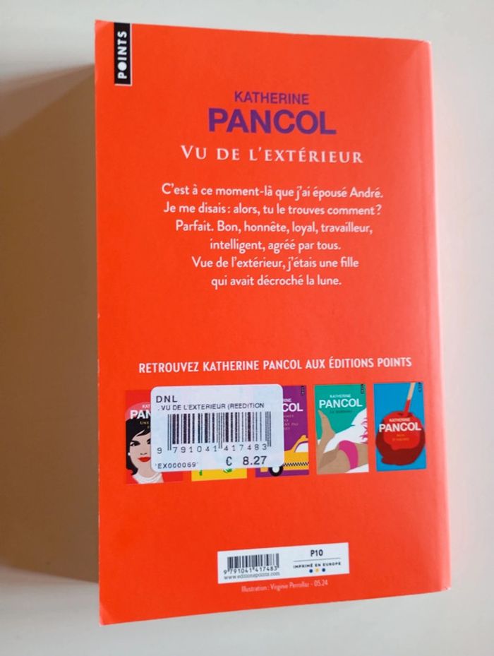 C’est à ce moment-là que j’ai épousé André. Il était si beau… Il m’arrivait quand il dormait d’ouvrir les yeux et de le contempler. Je me disais : alors, tu le trouves comment ? Parfait. Bon, honnête, loyal, travailleur, intelligent, agréé par tous. Et cette perfection me rassurait, me donnait une identité. Vue de l’extérieur, j’étais une fille qui avait décroché la lune. Éditeur ‏ : ‎ Points 336 pages Dimensions ‏ : ‎ 11 x 18 cm Livre en très bon état Je vends d'autres livres de Katherine Pancol #phil_peg_pancol et #phil_peg_feelgood #katherinepancol #romanfeelgood