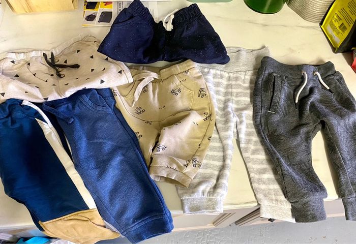 Lot 7 pantalons 9 mois. Ikks, name it, kiabi, Kimbaloo. Certains sont des petits 12 mois