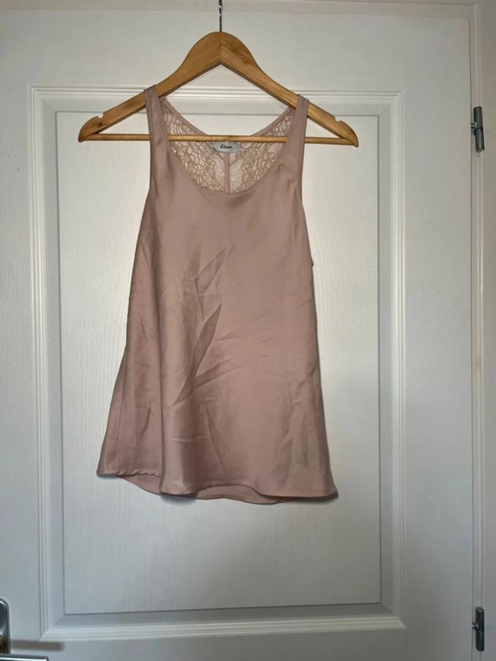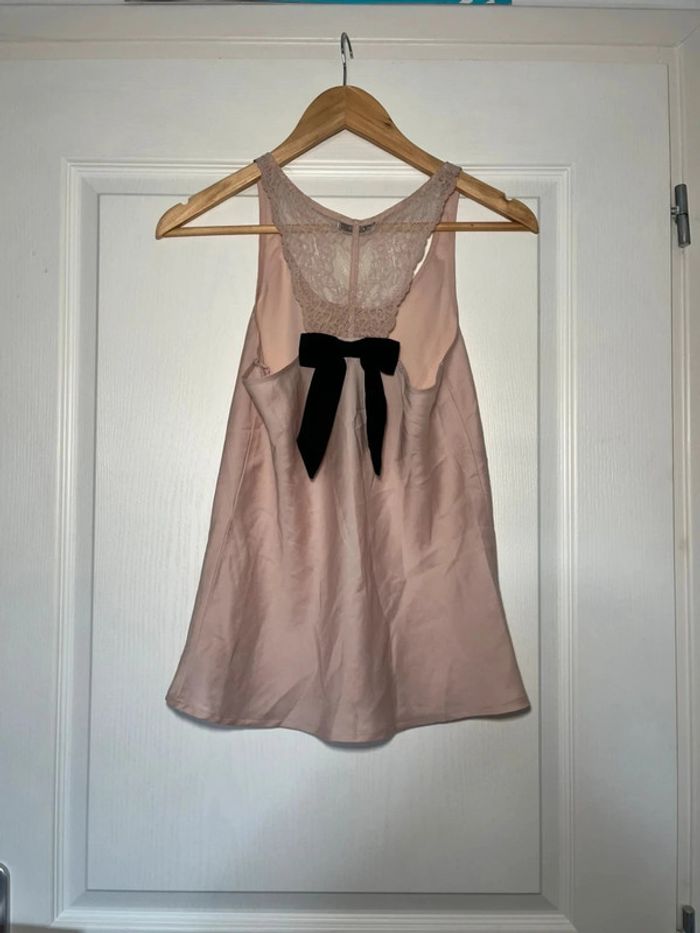 Top satiné rose Dentelle dans le dos Noeud noir Etam taille S Très bon état #topsatine #toprose #topdentelle #topetam #top36