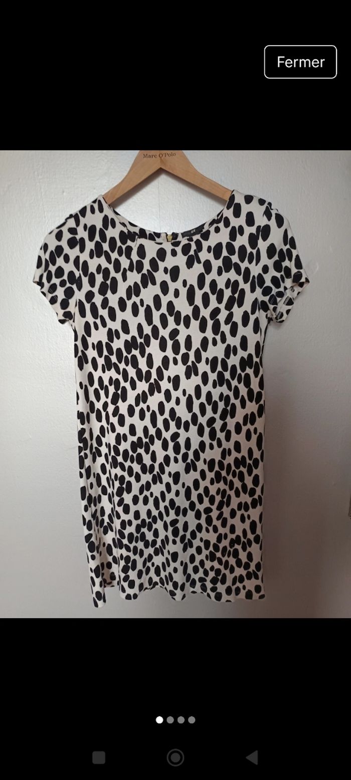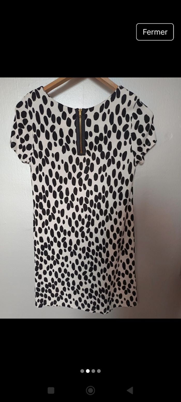 Robe matière fluide , fermeture éclaire à l'arrière , manches courtes , taille S , peu porté , bon état .
