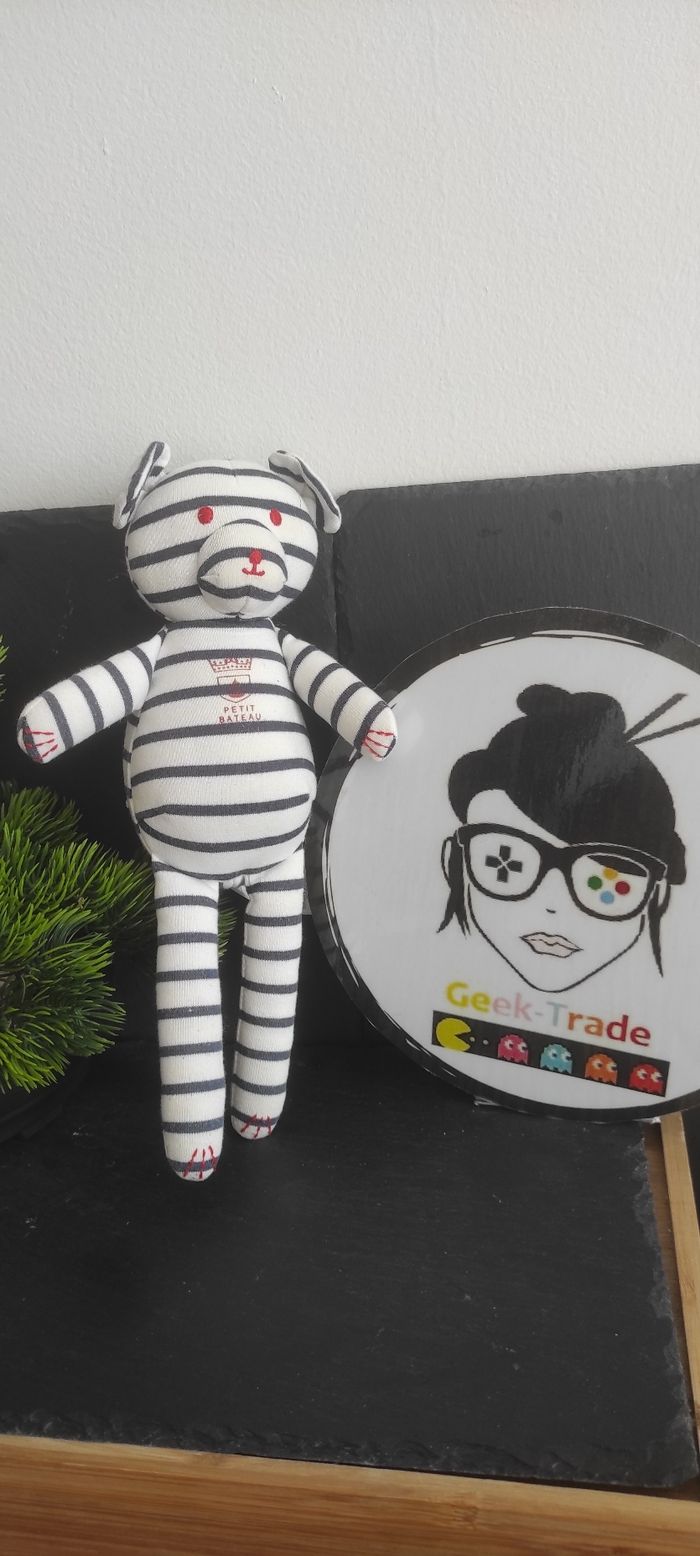 remise en main propre possible : Vertou (44) Référence : DD002691 #geektradepetitbateau Bon etat   Il a un petit trou derrière la tête Il est à nettoyer il a une légère tâche sur la tête c est discret et ça devrait partir au lavage Le logo en arrière plan fait 20 cm de diamètre Afin de ne pas abîmer les doudous et de laisser le choix dans l'utilisation de la lessive les peluches ne sont pas lavées avant envoi Description complément : Petit nettoyage à prévoir Vous achetez ce que vous voyez les photos font entièrement partie de la description Transport : Les frais de transport comprennent les frais du transporteur ainsi que l'emballage pour protéger au mieux votre achat. Chaque achat est envoyé en format colis avec numéro de suivi Le poids du colis est de 500g finit (je ne peux pas faire moins) il peut donc y avoir plusieurs objets dans le carton si vous le souhaitez (contactez moi afinde grouper les frais de port) Référencement : #geektradedoudou #peluche #plush  #doudou #enfant #bebe #knuffel #comforter #felpa #Plüsch #doudou #comforter #schnuffeltuch #kuscheltuch #knuffeldoekje #mantita #naninha #copertina #peluche #plush #stuffedanimal #kuscheltier #knuffel #bichinhodepelúcia #nostalgie #nostalgia #vintage