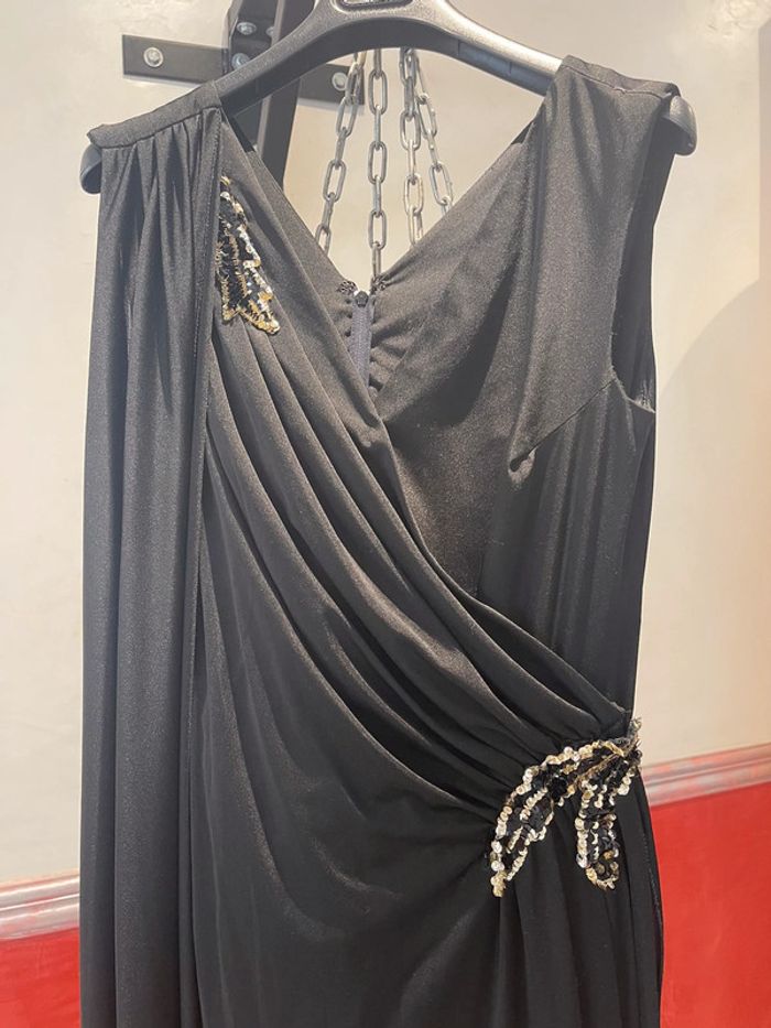 Robe de soirée femme 44/46 noire Robe longue fluide élastique Empiècement en sequins à recoudre légèrement #robe #robedesoirée #robedesoiree44 🛍 Plein de bonnes affaires mises régulièrement sur mon compte @vicky_bs 📦 Envoi rapide et soigné 💸 Réduction sur les lots activée + vous achetez + vous économisez !