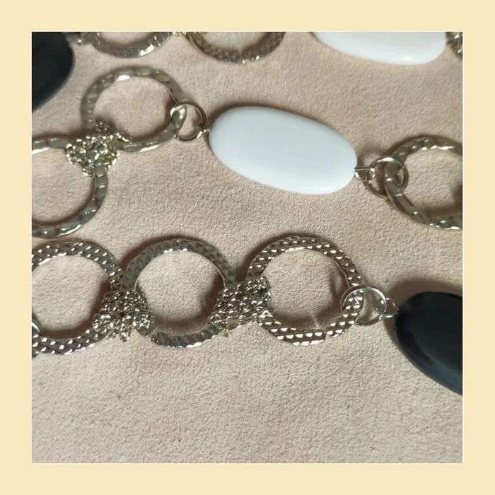 Un collier original aux maillons argentés martelés, agrémenté de perles ovales noires et blanches effet nacré. Look graphique et moderne, parfait pour sublimer une tenue sobre ou monochrome. 📏 Longueur : environ 80 cm 📎 Fermoir : sans fermoir (s'enfile par la tête) 🎨 Couleurs : noir, blanc, argenté 💡 Léger, facile à porter. Convient à toutes les morphologies. 🔸 Collection : PMN – Petit prix / Mini prix / Fantaisie 📌 État : neuf – jamais porté (qualité fantaisie simple, petit prix). 💡 Idéal pour une touche stylée à mini budget, ou pour vos looks du quotidien. 📦 Envoi rapide & soigné. 🎁 Possibilité d’envoi en lot ou petit cadeau surprise pour les commandes multiples ! BIFAN #collier #collierfantaisie #bijouxfemme #accessoires #noiretblanc #bijouxoriginaux #collierlong #graphique #stylemoderne #bijouxvinted #collierpascher #collierargenté #collieroval #bijouxfantaisie #PMN