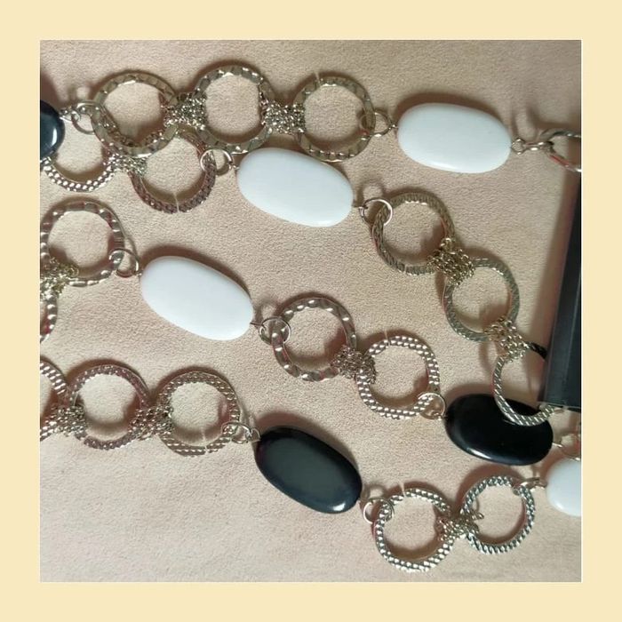 Collier fantaisie noir & blanc – Maillons argentés texturés - photo numéro 9